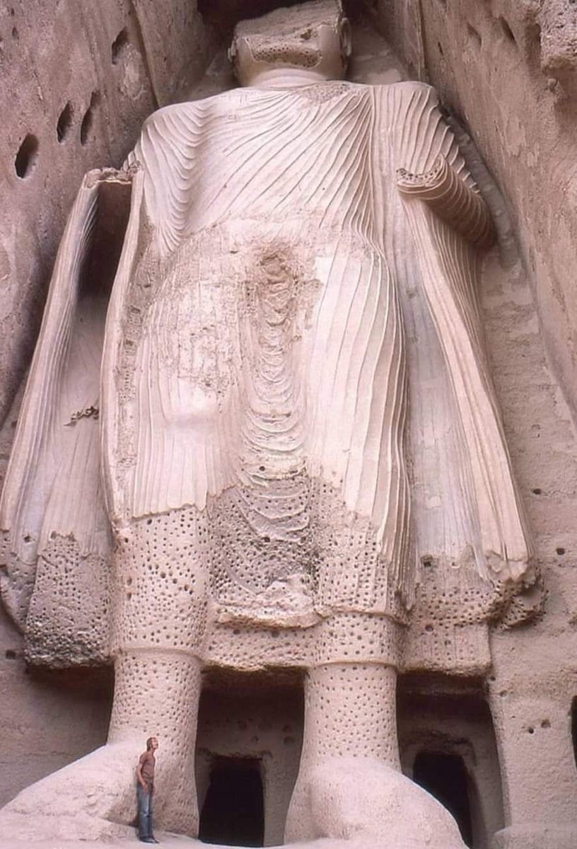 阿富汗巴米扬一尊佛像被毁前的惊人照片。 建于公元 554 年,融合了经典的犍陀罗艺术,有人怀疑它比这要古老得多。 2001年被塔利班摧毁。