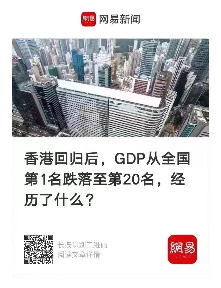 网易【香港回归后,GDP从全国第1名跌落至第20名,经历了什么?】