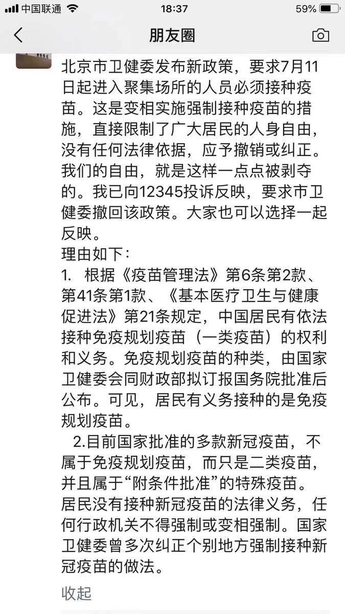 穷凶极恶了!北京市卫健委公然违反《疫苗管理法》。转【北京:7月11日起进出以下人群聚集场所 需要接种疫苗】