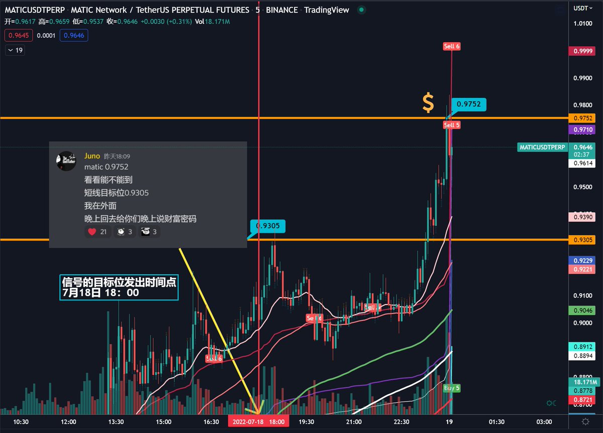 #BTC #Cryptocurency #Polygon #MaticMatic 上涨打到了给到各位的算法目标位0.9752,底部做多头寸该止盈止盈