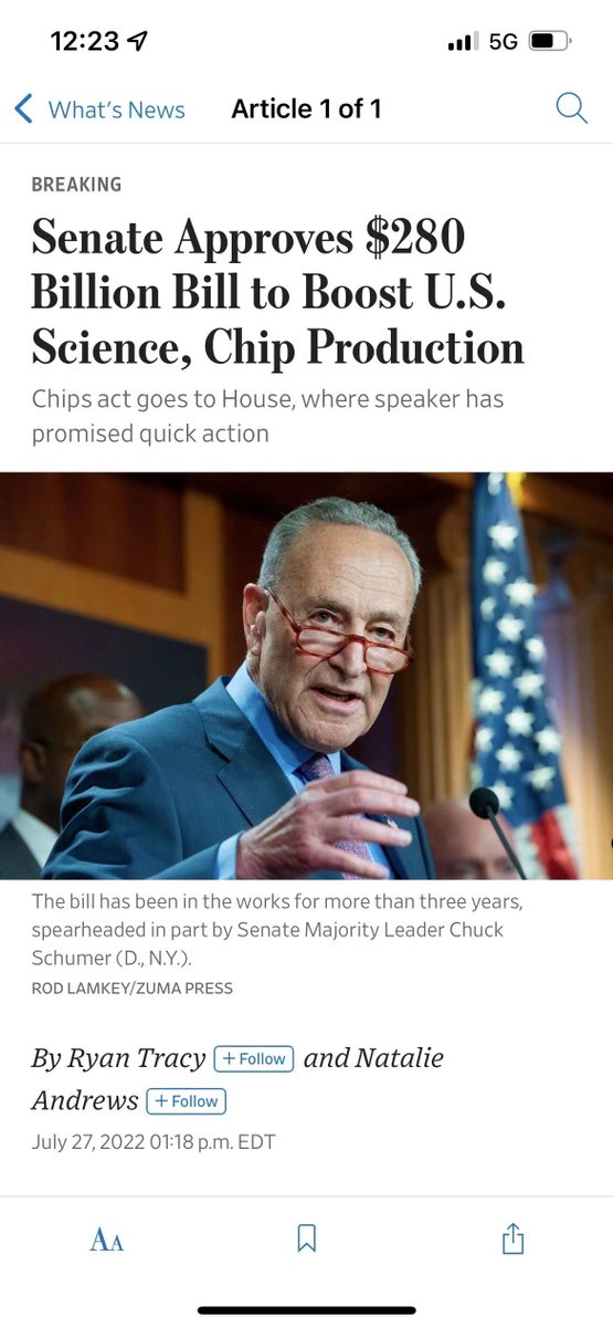 美国,芯片法案最终通过了,意料之中。拨了2800亿巨款,加速让芯片行业成为美国的核心产业。