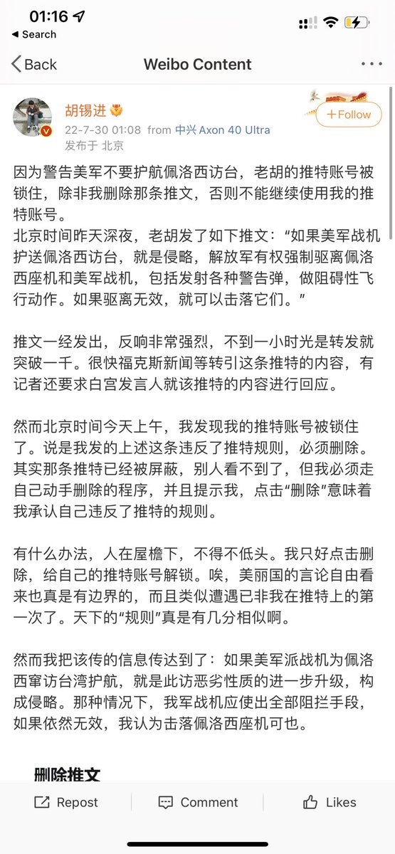胡锡进评论区翻车了。推特是什么?成为了中国当今最大的不解之谜。