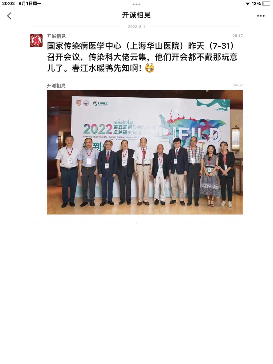 转【春江水暖鸭先知啊!】国家传染病医学中心(上海华山医院)昨天 (7-31)召开会议,传染科大佬云集,他们开会都不戴那玩意儿了。