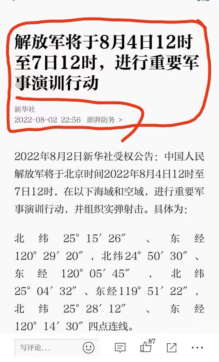 马后炮,欢送佩洛西!?#新华社【解放军将于8月4日12时至7日12时,进行重要军事演训行动】
