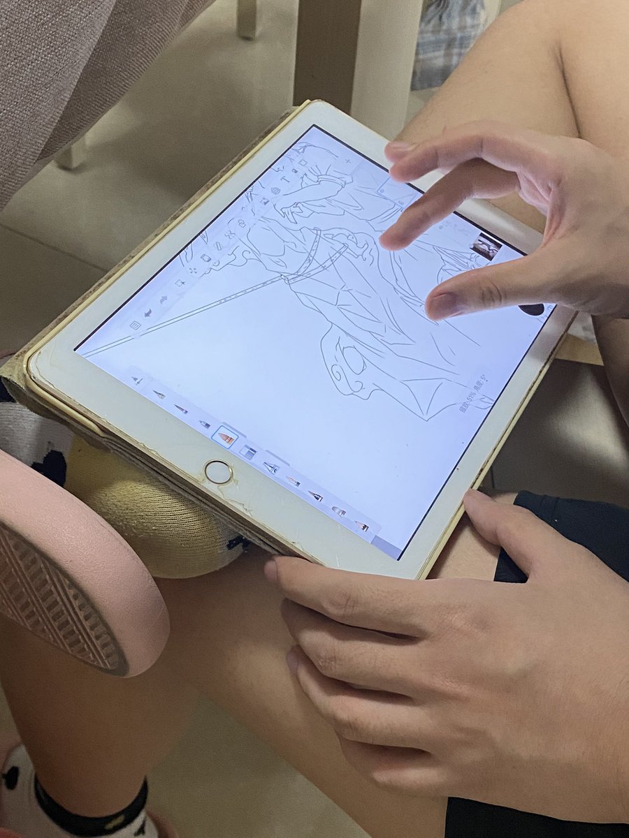 小花画画居然是拿手指头画的,而且他是直接画线稿,都不打草稿的,我本人表情: