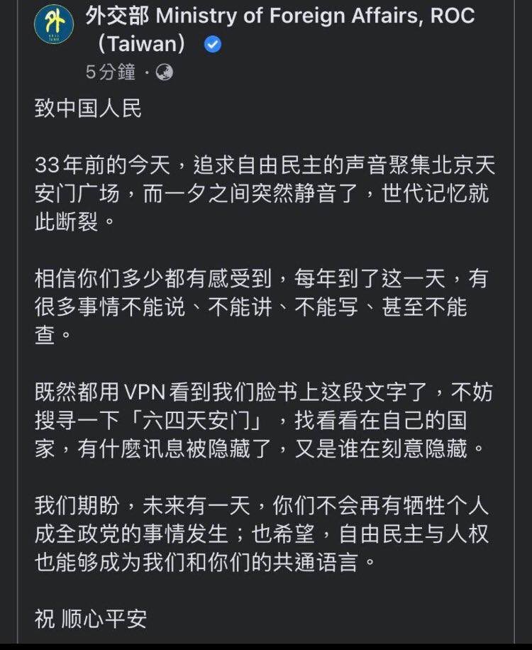 台湾外交部,致中国人民:情真意切,字字珠玑!