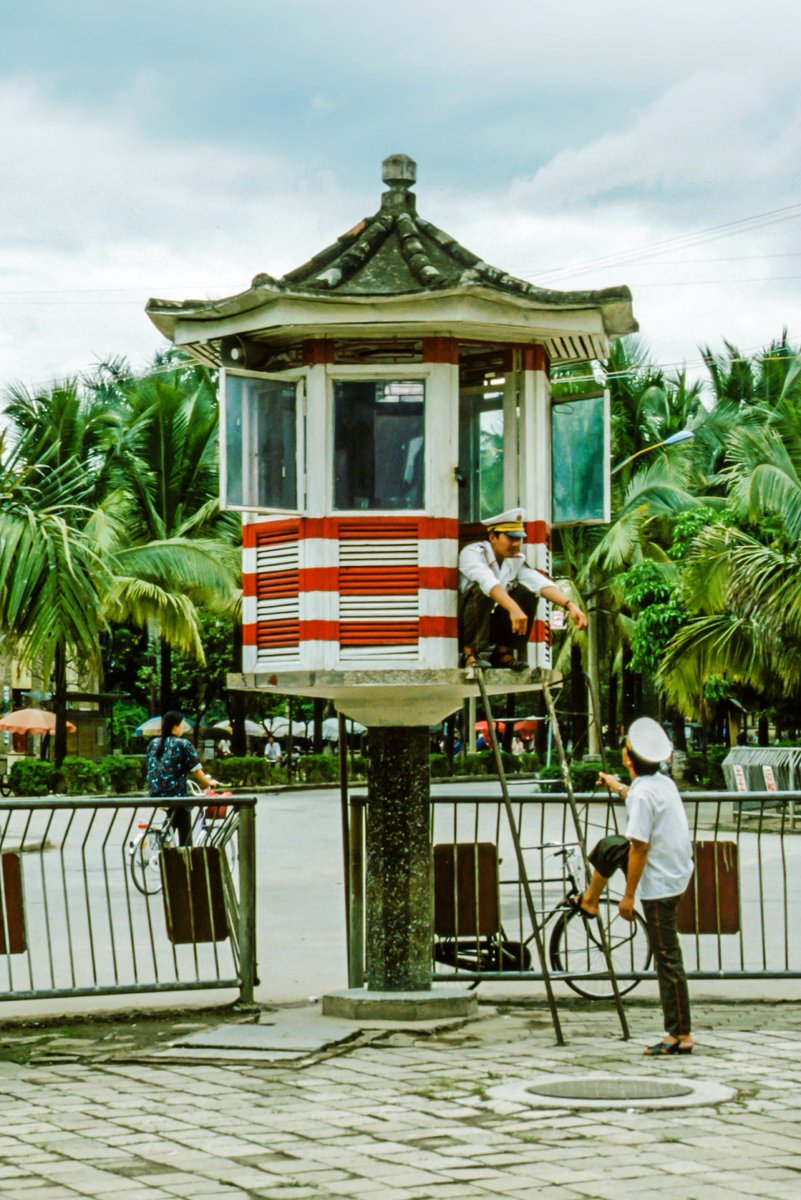 图1:交通岗亭,云南景洪,1991年8月摄。 图2:1980年上海南京路