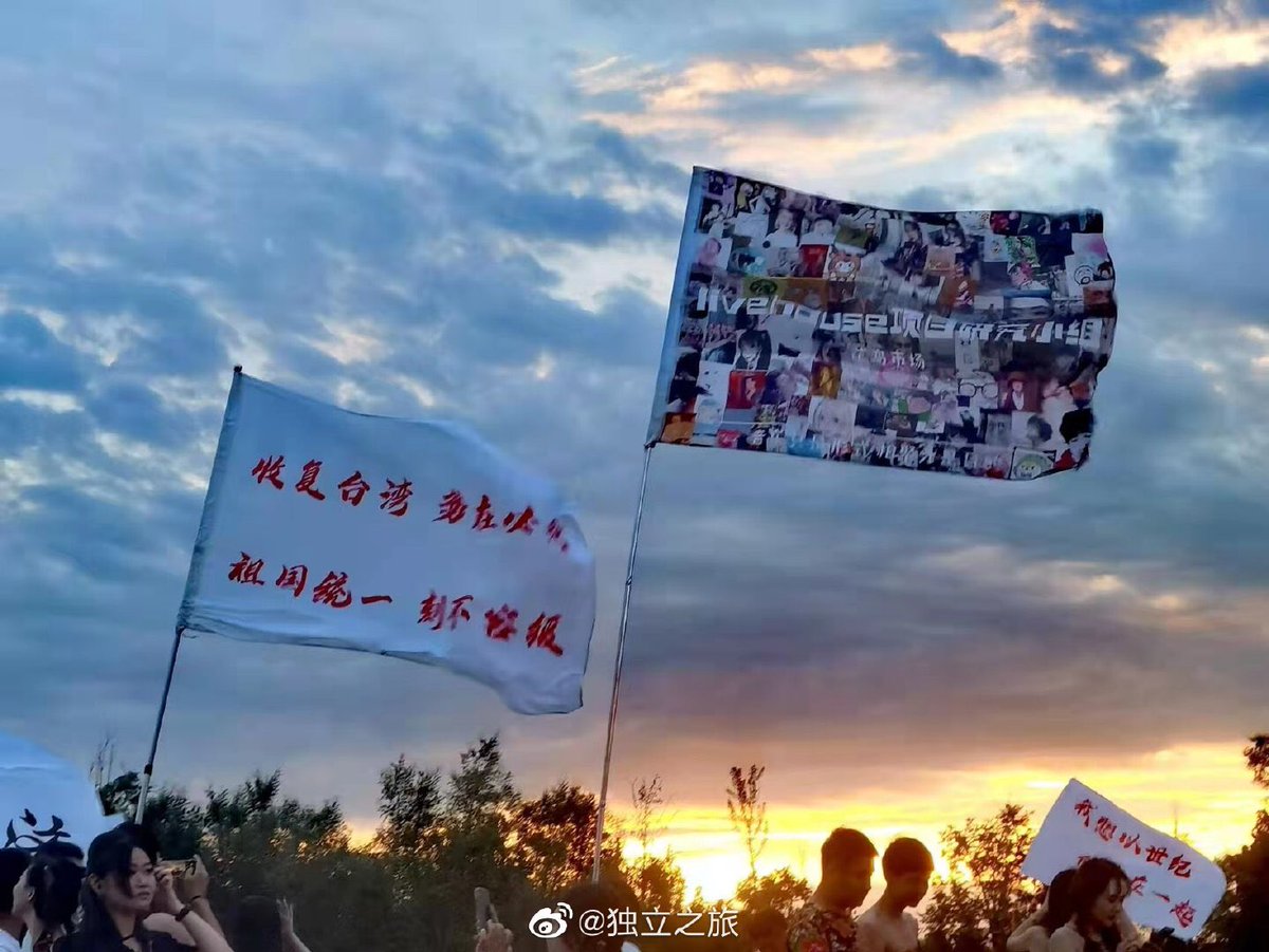 墙内某摇滚音乐节彩旗招展,没看到摇滚的叛逆却看到复读标语