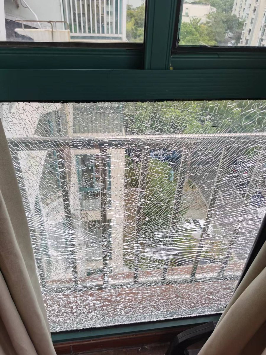 册那,我家楼上阳台的玻璃,热的裂开了