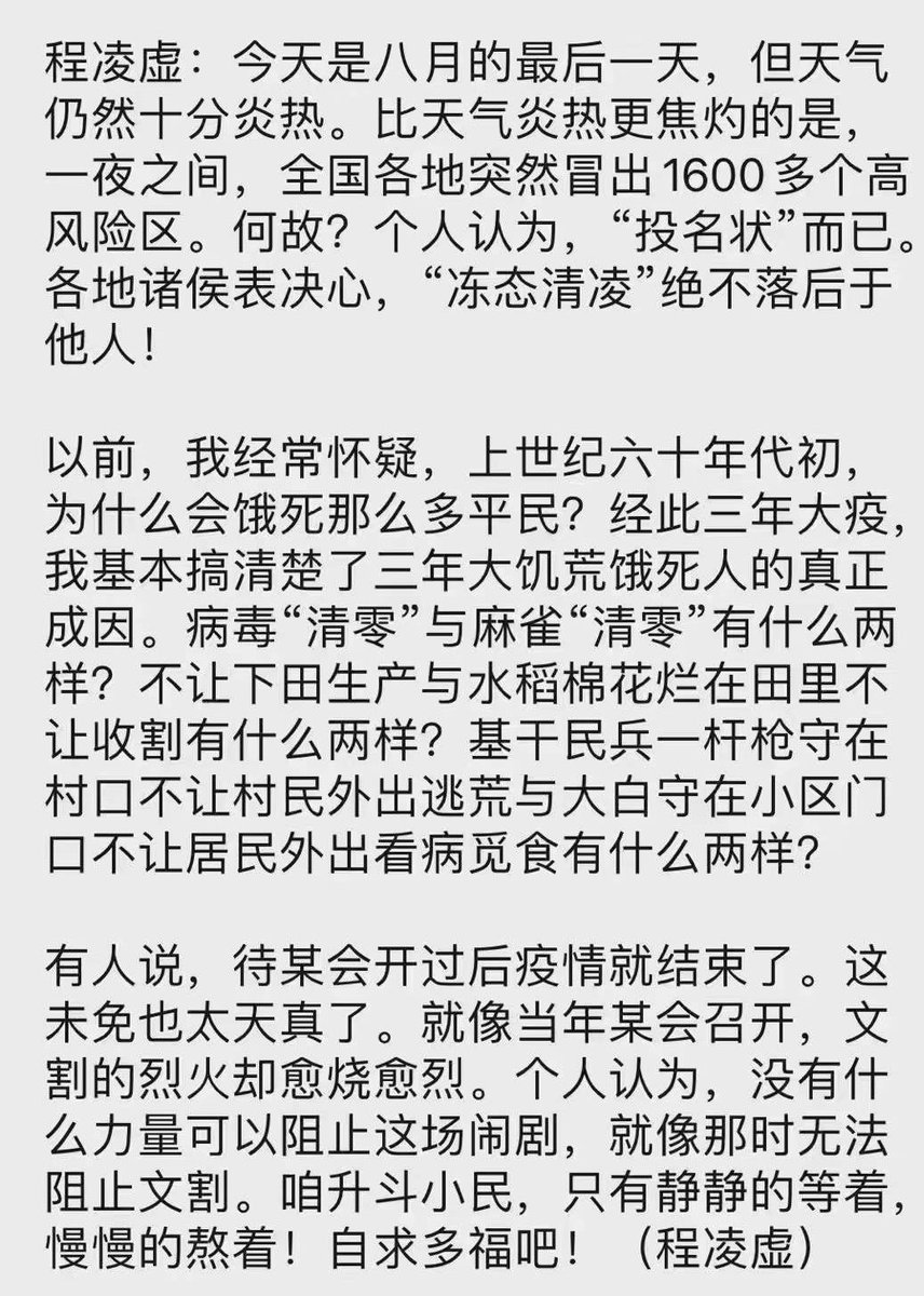 文革最开始的时候也没人料到能折腾十年,直到毛去见马克思之后才结束。那么,清零运动什么时候结束呢?