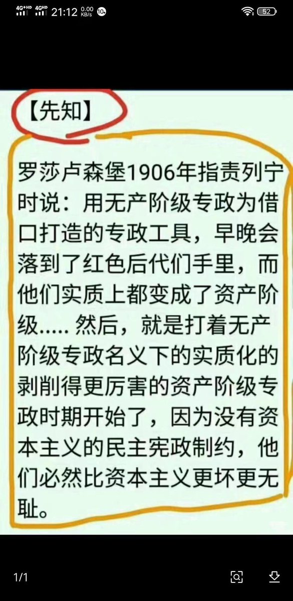 今日金句转【罗莎卢森堡曾于1906年指责列宁说:“用无产阶级专政为借口打造的专政工具,早晚会落到红色后代们手里,而他们实质上都变成了资产阶级……”】