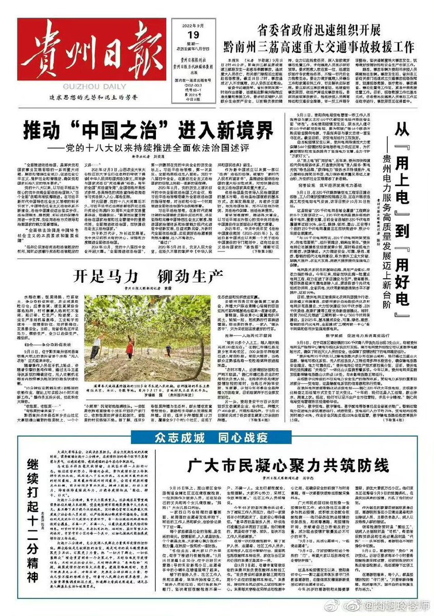 今天的贵州日报,如果你在找大巴车祸的报道,请看右上↗️。重点在领导高度重视指挥救援