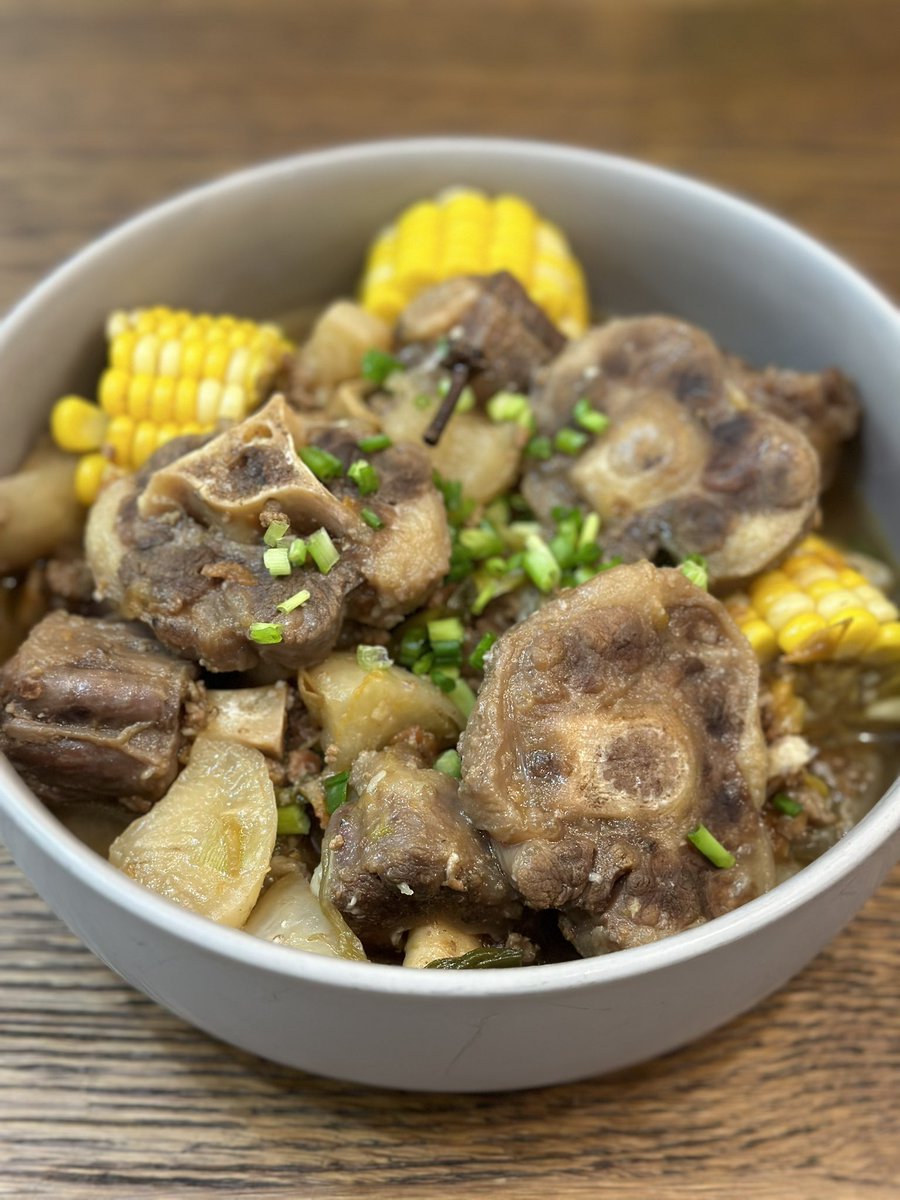 晚餐。牛尾巴烧萝卜玉米。