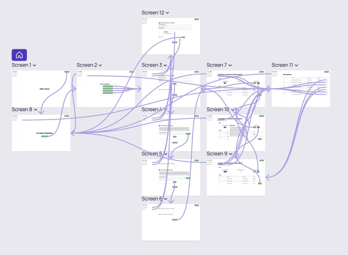 Visily 用来画交互设计稿效率比 Figma 高多了,不需要先设计一堆 components 就可以直接拖拽现成的元素来搭建页面,只花了不到两个小时就画完了整个 MVP 的交互。
