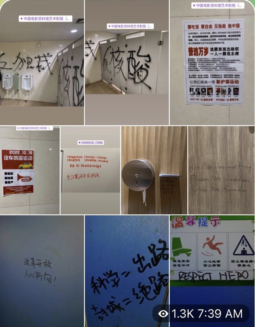 北京的厕所里,出现了大量的标语和传单,呼应英雄彭载舟。这预示着中国的反抗大潮即将来临。