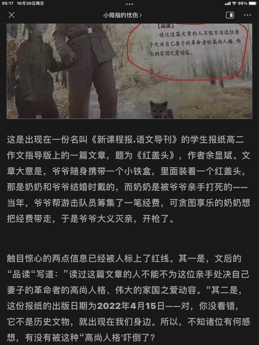 讲好中国故事……转【大义灭亲的故事】品读:1 “读过这篇文章的人不能不为这位亲手处决自己妻子的革命者的高尚人格、伟大的家国之爱动容。”2 这份报纸的出版日期为2022年4月15日