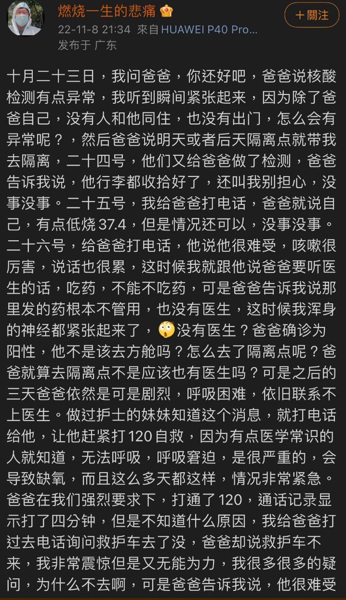 新疆库尔勒,自己的爸爸进入当地隔离点后死亡。目前死因正在调查。