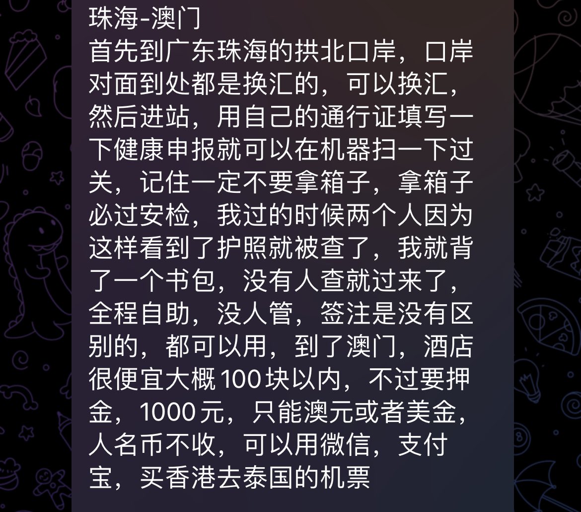 网友提供的从珠海通关到泰国的攻略。