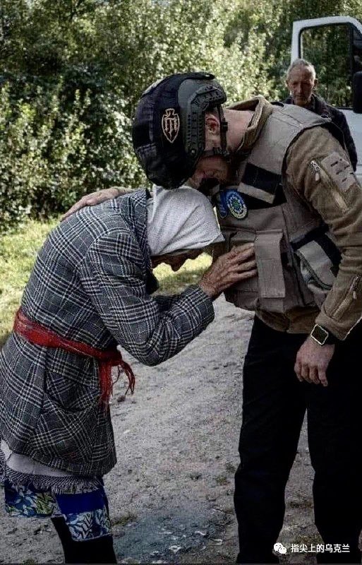 指乌君发的这祯照片上的老奶奶和二战时期的东欧老人几乎一摸一样。要不是士兵的现代化头盔和手表,真有点时间倒退的恍惚。只是这次俄罗斯是站在造成平民死亡,邪恶的一方,令人唏嘘!