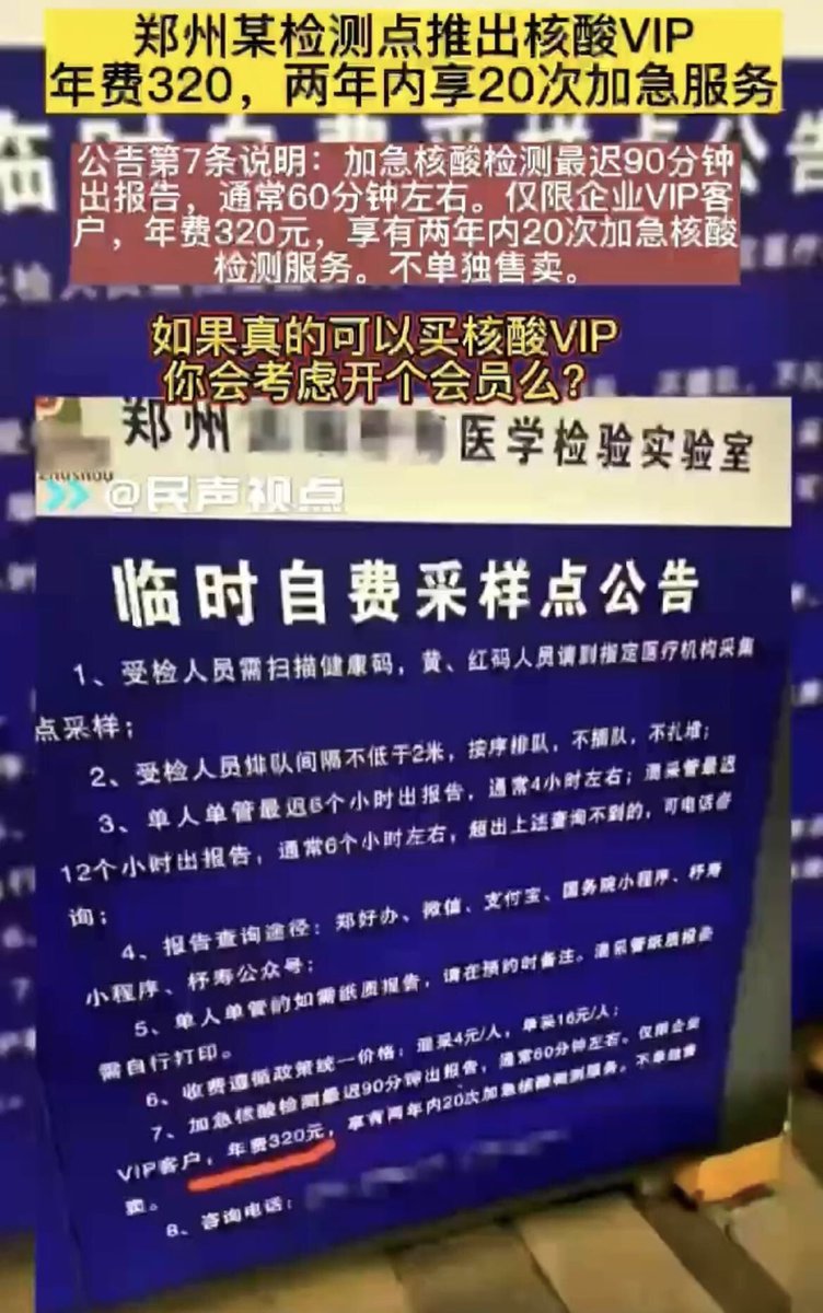 郑州推出核酸年套餐,为了大家健康,不要999,也不要888,一年只需320元。1天1块都不到,真心不贵。VIP核酸年费会员,你、值得拥有!
