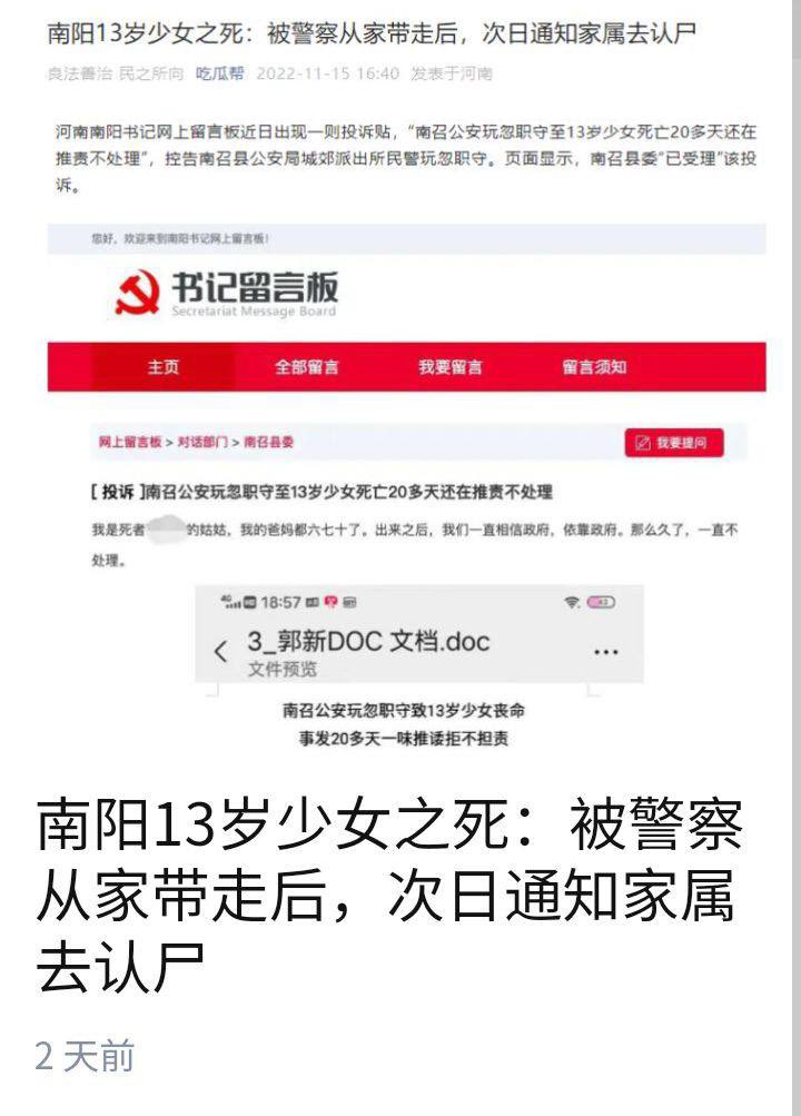 这个非转不可,出自官媒都如此离奇!南阳13岁少女被警察从家里带走后隔日离奇死亡,其他的平台的新闻全部被删掉了。
