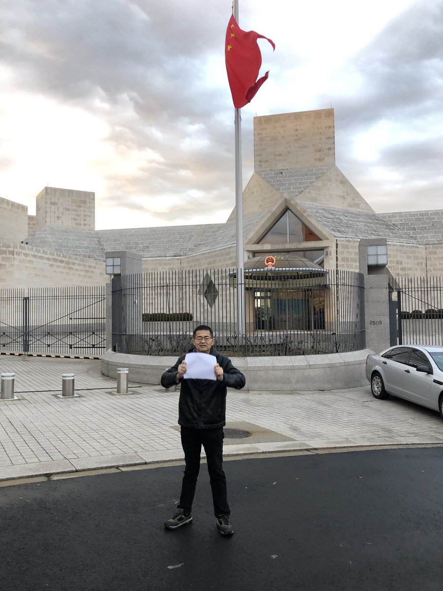 刚到中国驻美国大使馆前,抗议习近平清零政策、声援中国民众的白纸革命、反封控运动!习近平下台!共产党下台!