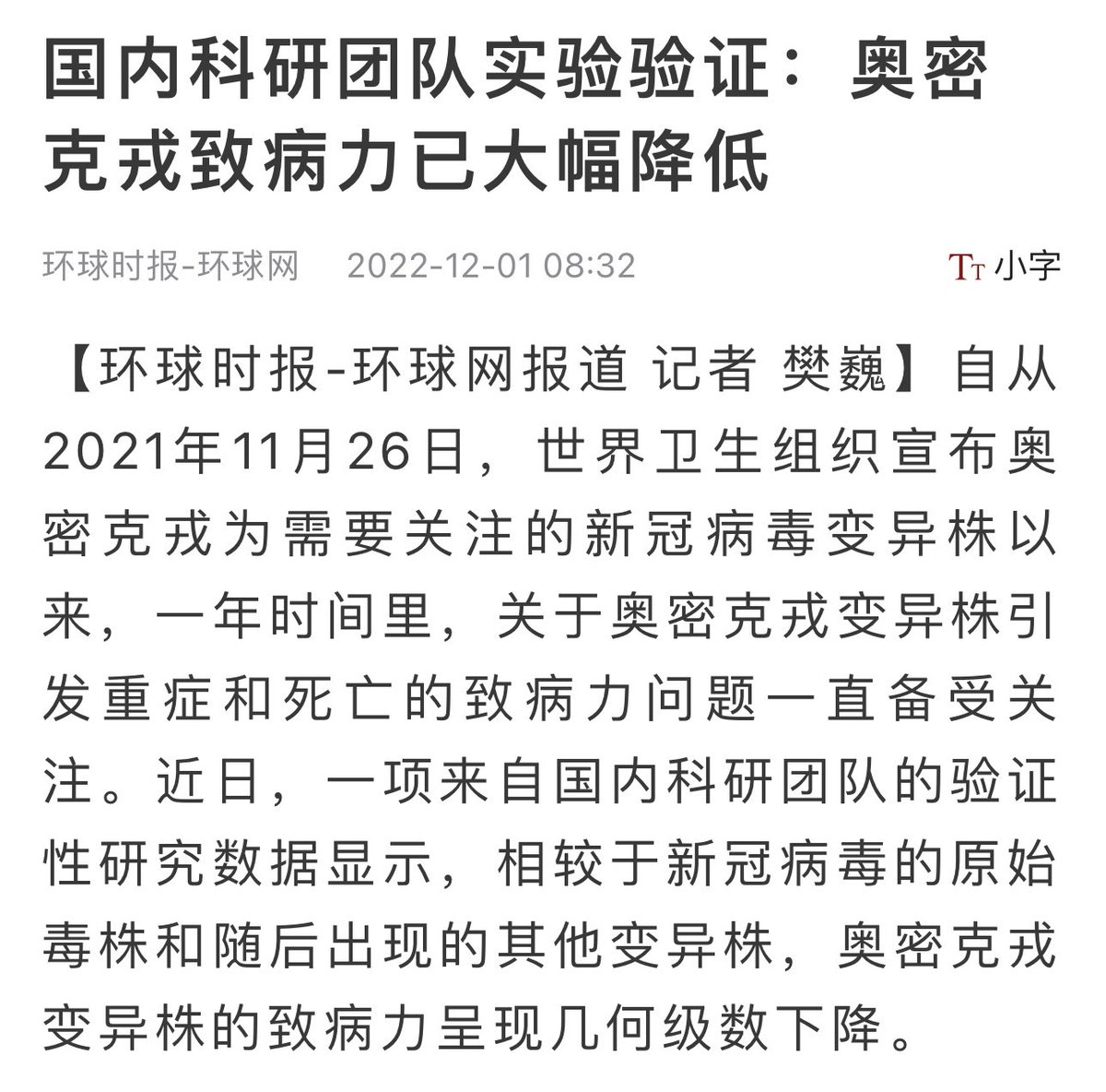 用体外实验、动物实验来证明“奥密克戎致病力已大幅降低”,和用体外实验、动物实验来证明药物疗效,性质是一样的。这两天墙内官媒大肆宣传奥密克戎致病力已大幅降低,是在造舆论,迫于政治压力想尝试放开?
