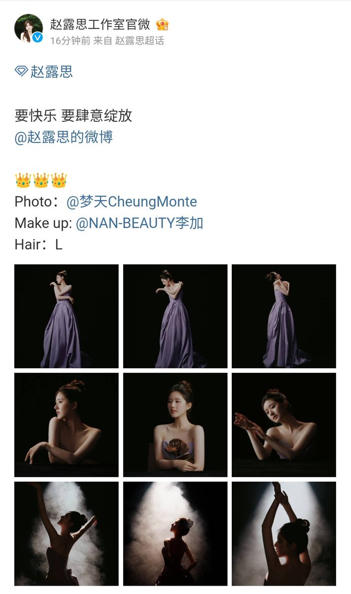 Lusi's Studio Weibo update; 要快乐 要肆意绽放 👑👑👑#ZhaoLusi #赵露思 #RosyZhao