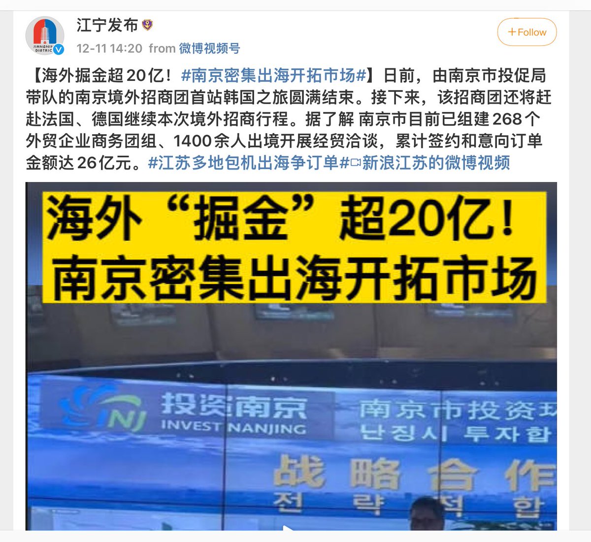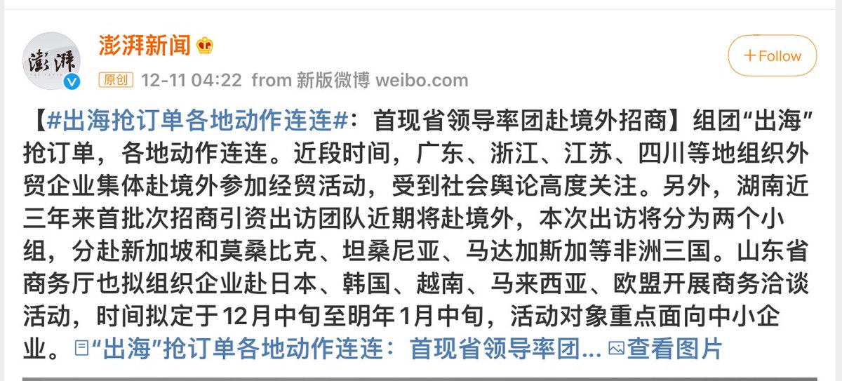 这个出国抢订单,时间段正好是圣诞元旦假期间。前两天还有个转了一圈说签了几个亿的发布找不到了,怀疑是本来就要签的,和一些意向表示都统计为出去一趟的成果了