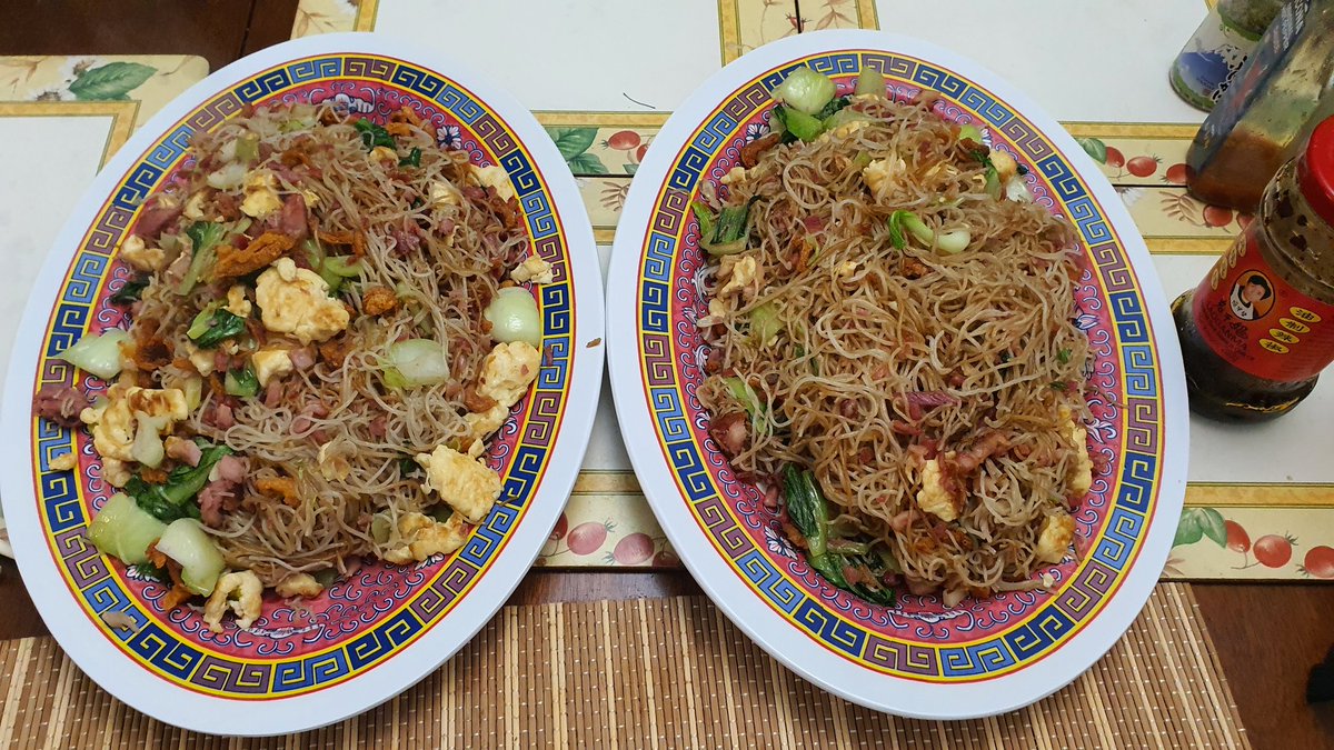 晚餐炒米粉, Tesco超市买的越南米粉,质量不错,开水稍微一烫就行,很容易炒,一包就炒了这两大盘。
