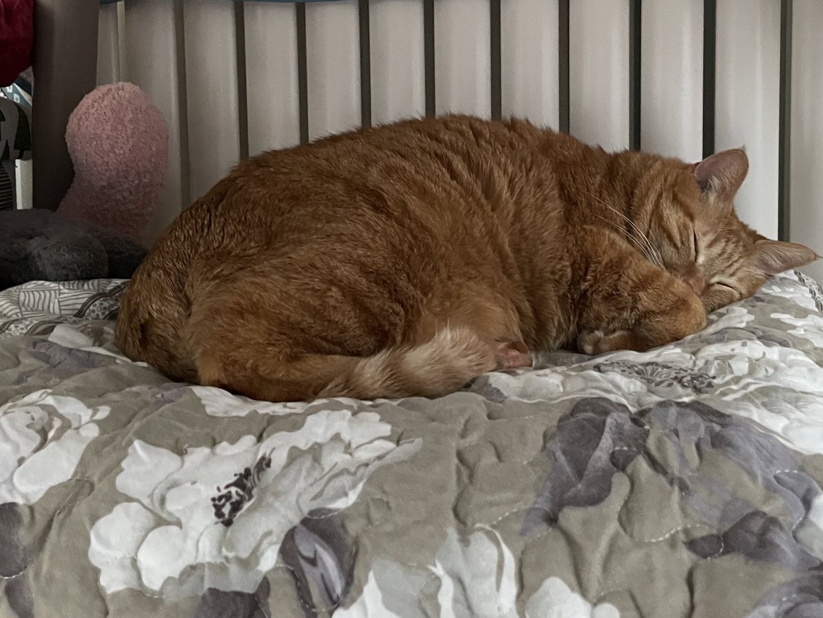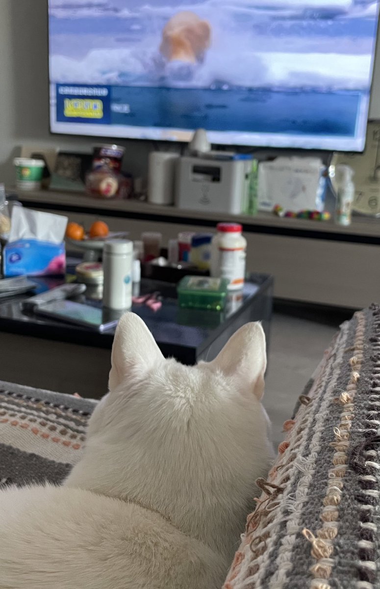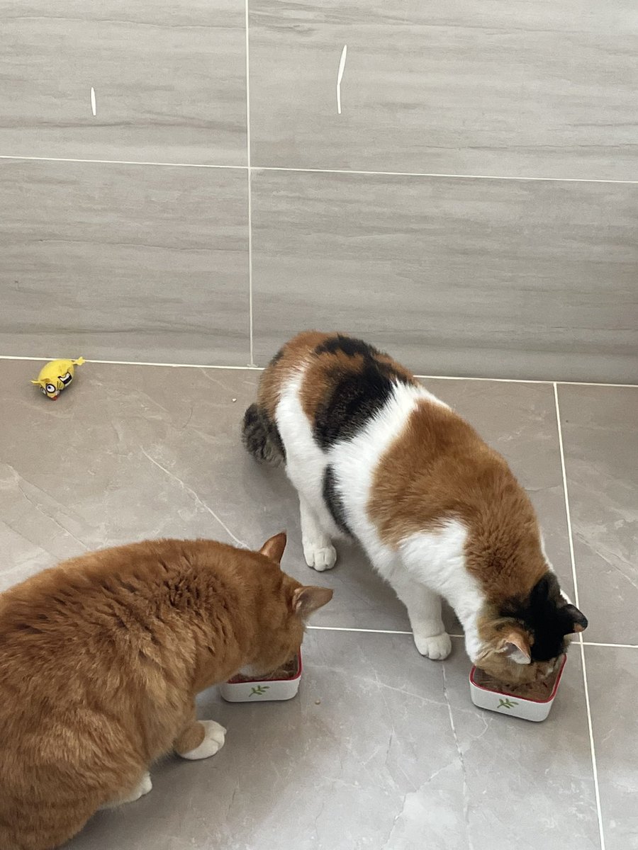 二白白在看电视,三三严肃丫在吃罐罐,小野和黄黄乖乖午睡了