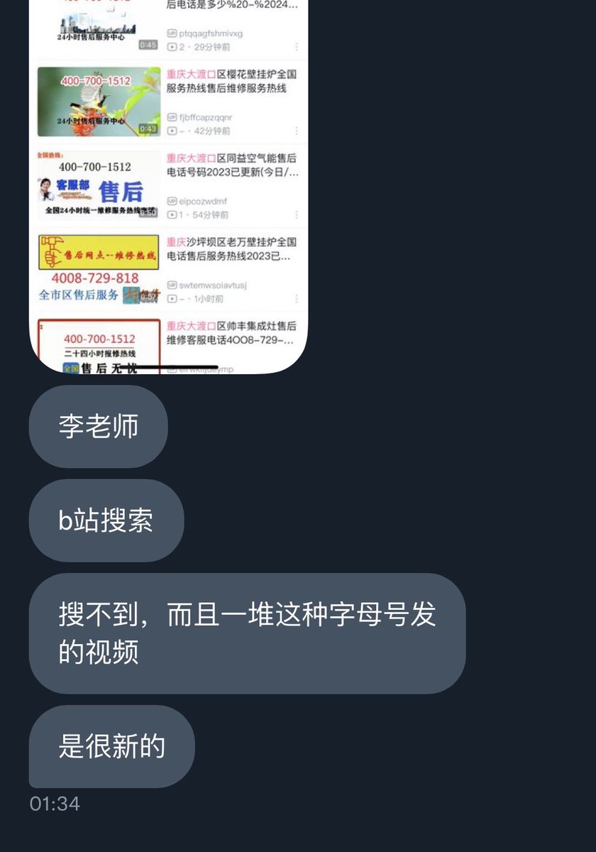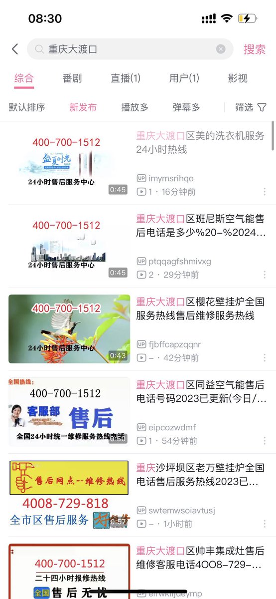 网友投稿,B站搜索关于重庆大渡口的内容,发现正在被乱码账号洗版