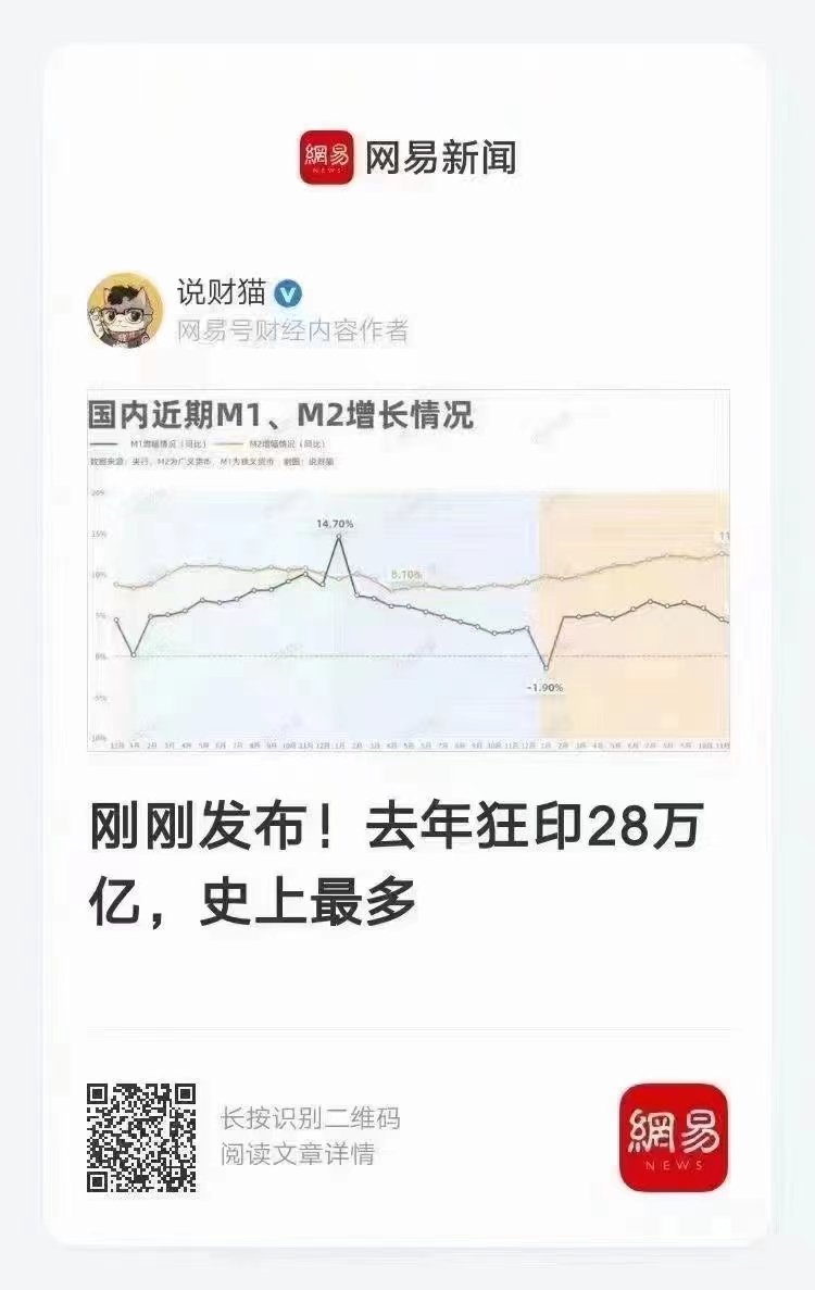 去年中共狂印28万亿人民币!!!就问你震精不震精?但仔细想想,即使如此,中共财政还是紧张,还是有那么多公务员发不出工资,是不是更震精?再想想,网易新闻竟然敢发出这样的新闻,是不是又有点希望了?经济在崩溃,人民在觉醒