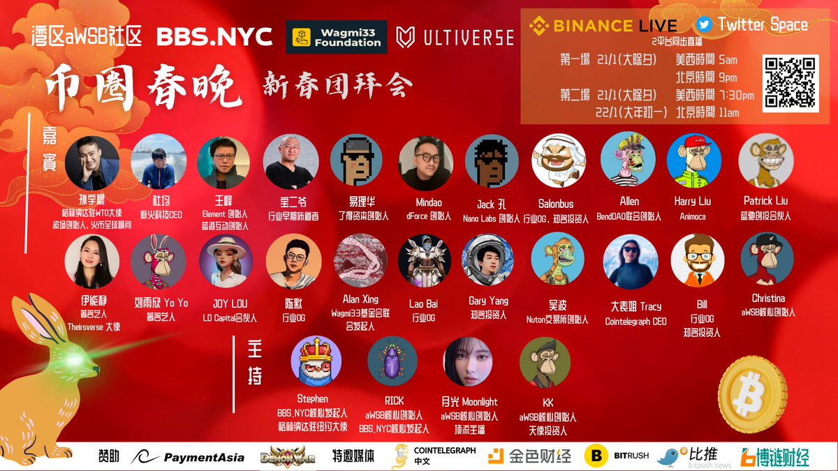 🎁🧧 华人Web3最强春晚阵容给世界各地的朋友们拜年啦!祝大家快乐平安,事业🐇飞猛进!🚀🚀