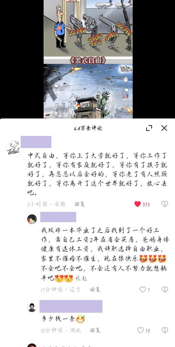 今天,共青团中央以《美式自由》为名发图讽刺加州蒙市舞厅枪击案,结果评论区大翻车!又赶紧删评论!