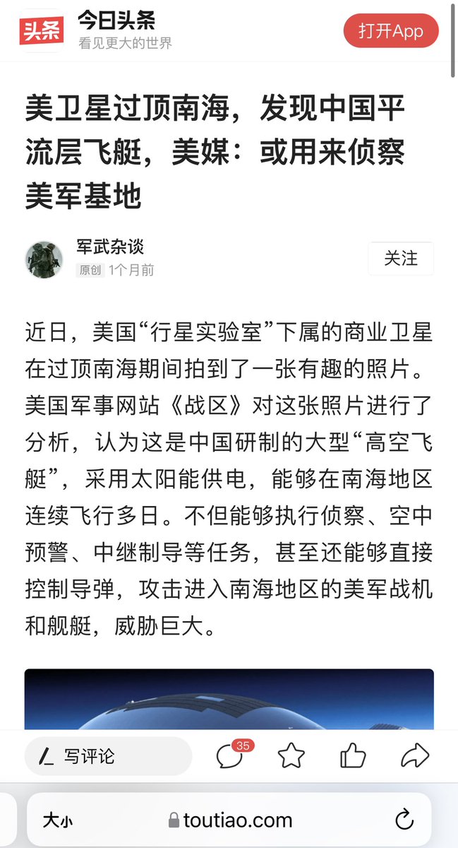 2022年12月,中共军方的公众号“军武杂谈”的文章中,毫不掩饰利用平流层飞艇等对美国进行军事袭击的野心