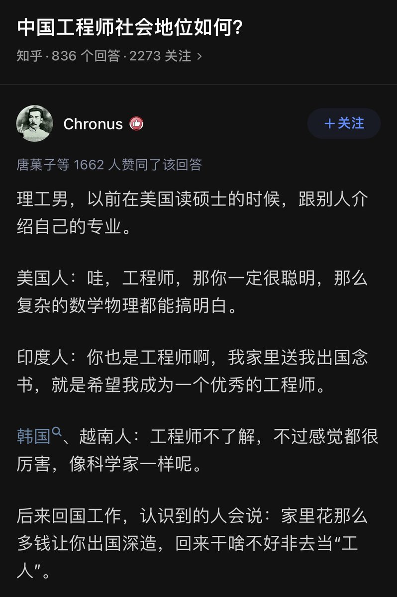 “家里花钱送你去留学,你竟然回来当工人”😂谈工程师在天朝的地位。