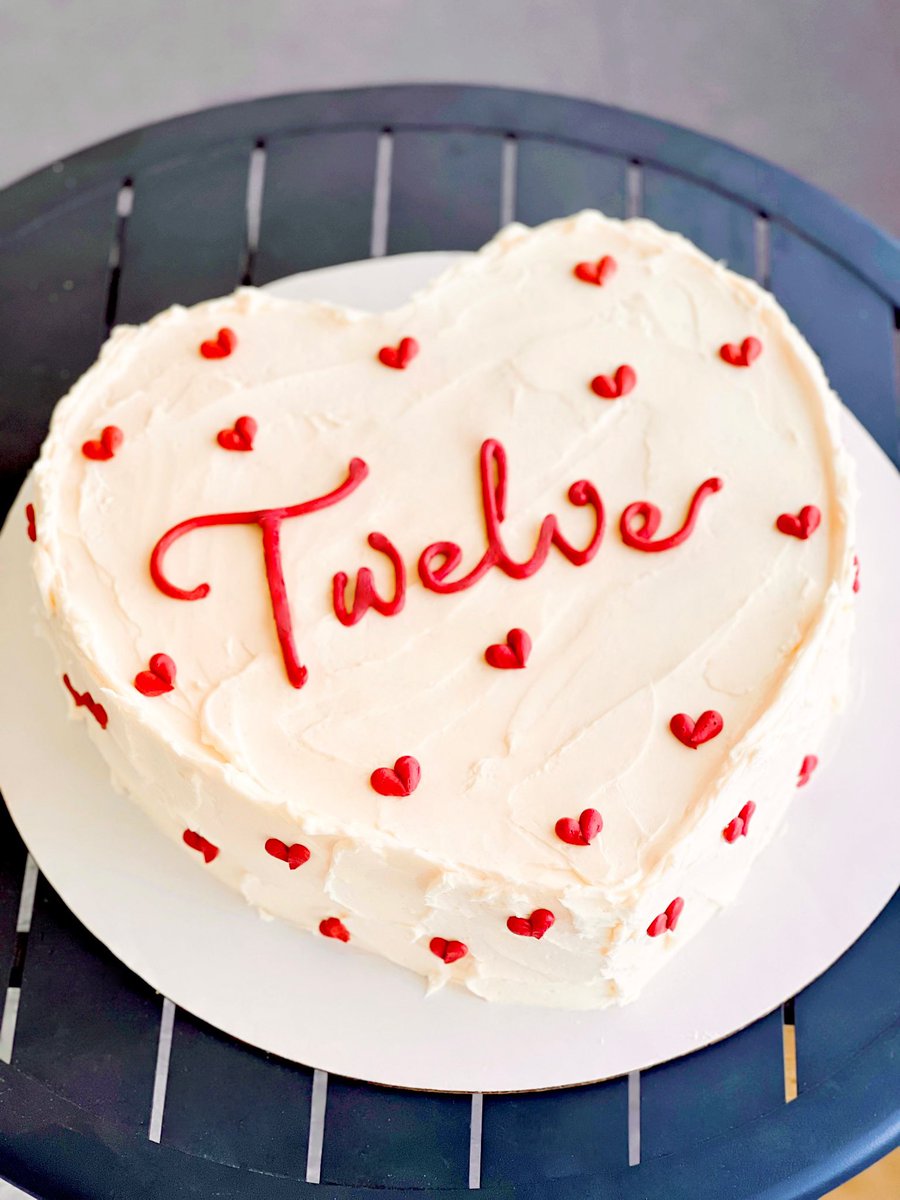 客定12寸的大心心❤️蛋糕结婚12年快乐鸭😋(没有这么大的模具,我在烘焙纸上徒手画了个心,然后比着切的,结果还真的是很心心呢!我可太会画心心了鸭🫶