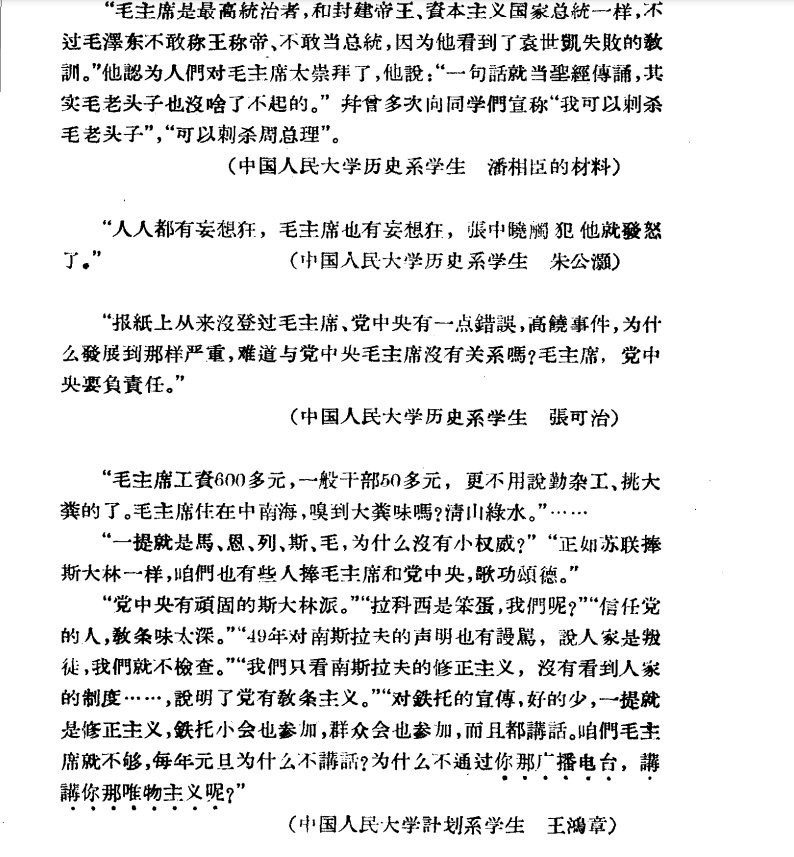 上世纪高校右派学生曾经发表过的经典言论,一个个挺敢说的。