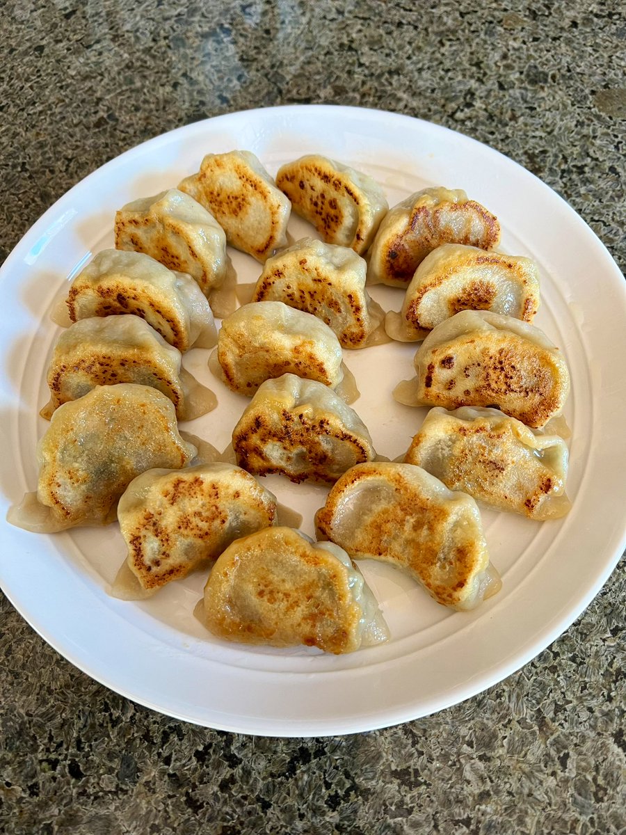中午没来得及做饭,就吃煎饺吧,过两天做真正的锅贴儿😀😀