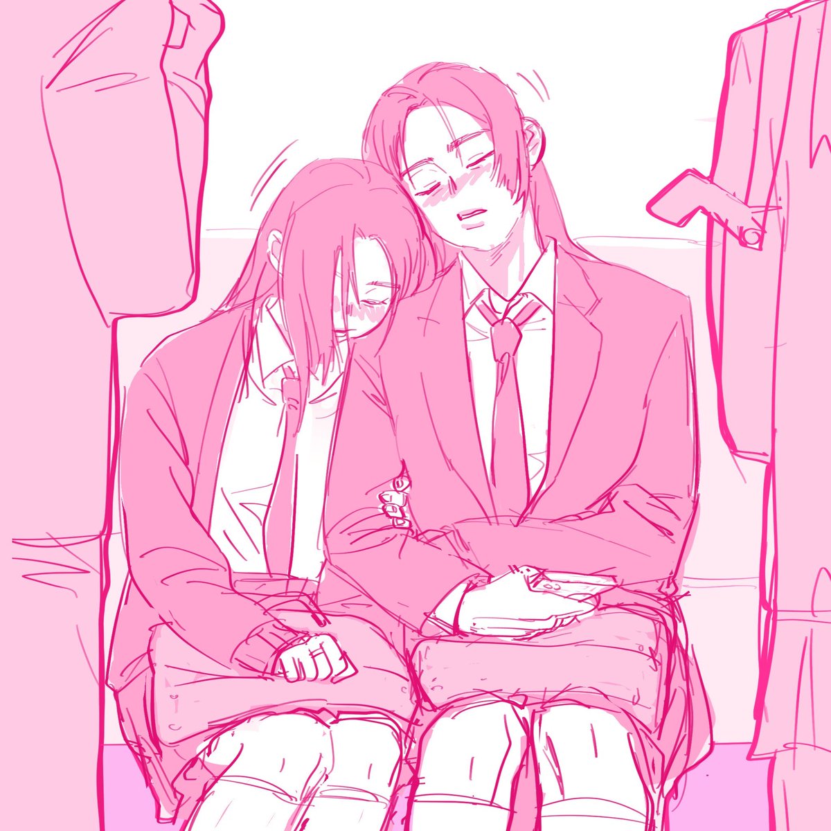 🍞4⃣️放学路上在电车里互相靠着睡觉的