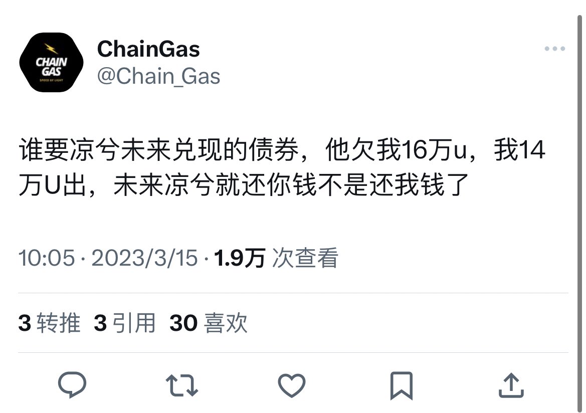 阿超发了个凉兮债券16万u的债券14万u出有实力的兄弟可以尝试下血本无归的感觉😂😂😂
