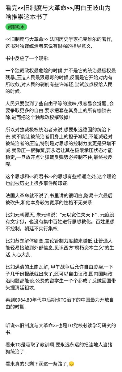 中国领导人是懂商君书的。为了不让民众产生对公民权利和幸福自由的向往,所以他们选择了长期维持高压统治。稍微减轻对社会的控制力,也许就意味着整座大坝的崩溃。