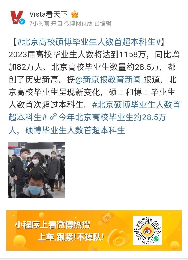 今年北京的硕博毕业生总量将首次超过本科生。老乡们,好日子还在后面呢。