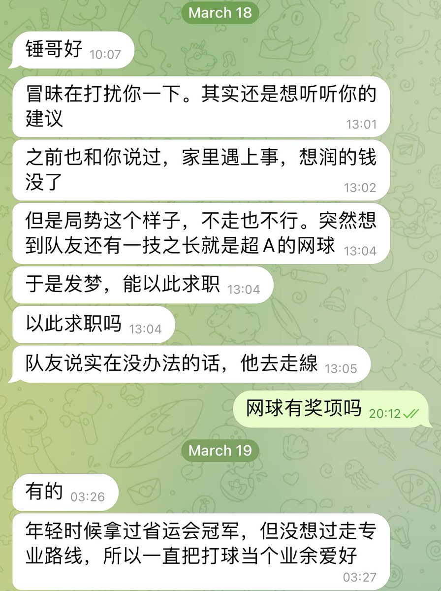 大家润的时候一定要结合自己的长处啊,不是所有人都需要留学的,你看,图中这位网友,网球省运会拿过冠军,这种出去找个海外俱乐部接收不是太大问题。