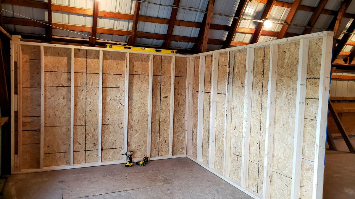边干边学,完成了未来卫生间两面墙的间隔。下午一场暴雨过后,农场有绚丽的晚霞。#barnhouseremodeling
