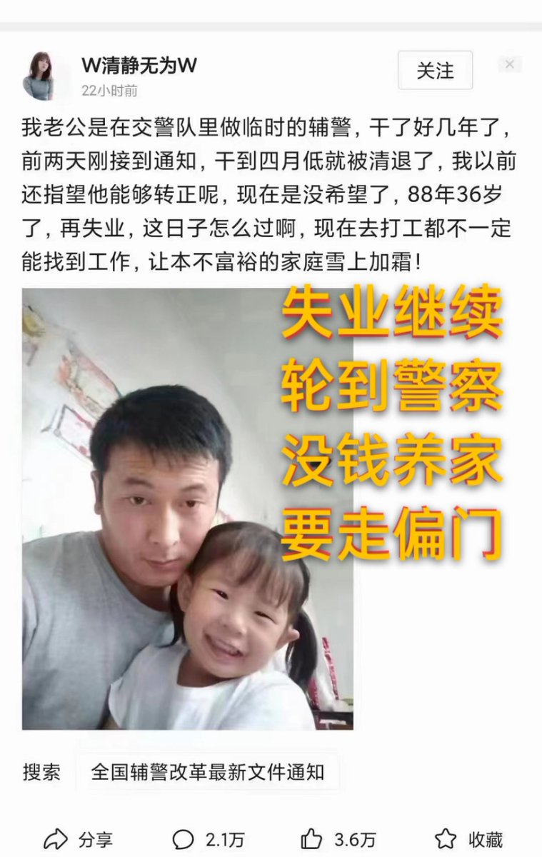 [警察失业:已经开始 雪上加霜][体制闲人:一无技术 二无能力][辅警谋生:难上加难 老婆绝望]