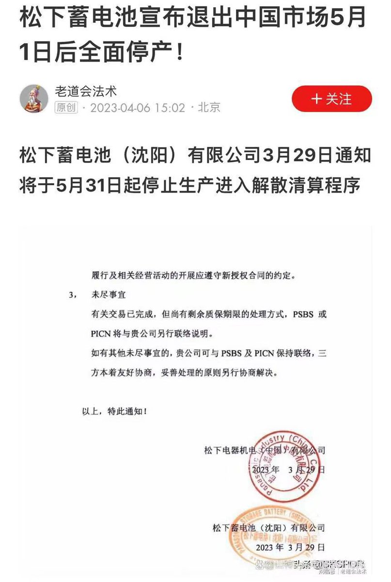 松下蓄电池(沈阳)有限公司宣布退出中国市场。