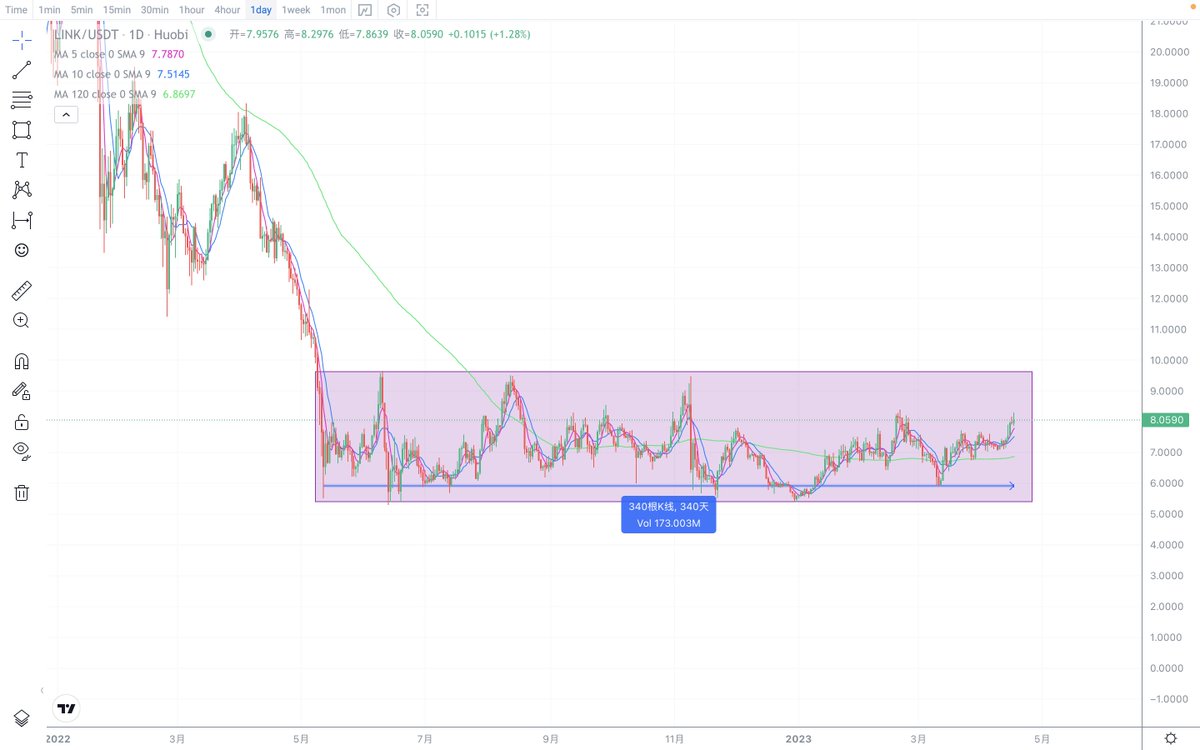 link已经横盘调整快一年了后续若突破大的震荡箱体(突破的概率很大),那就是巨大的泵link属于中后程发力的币,今年上半年一定会有表演的时刻中线布局的可以耐心持有,没有上车的回调分批上,因为link有点不抗跌#BTC