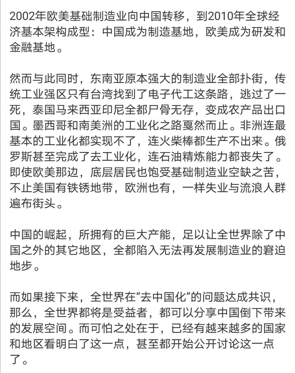 接上面那一条。这两条加起来,就是我对全球化走向的全部看法。